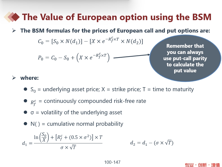 BSM模型只适用于欧式期权的定价,如下截图,BSM是利用一个公式定价的,无法直接应用于美式期权的定价。