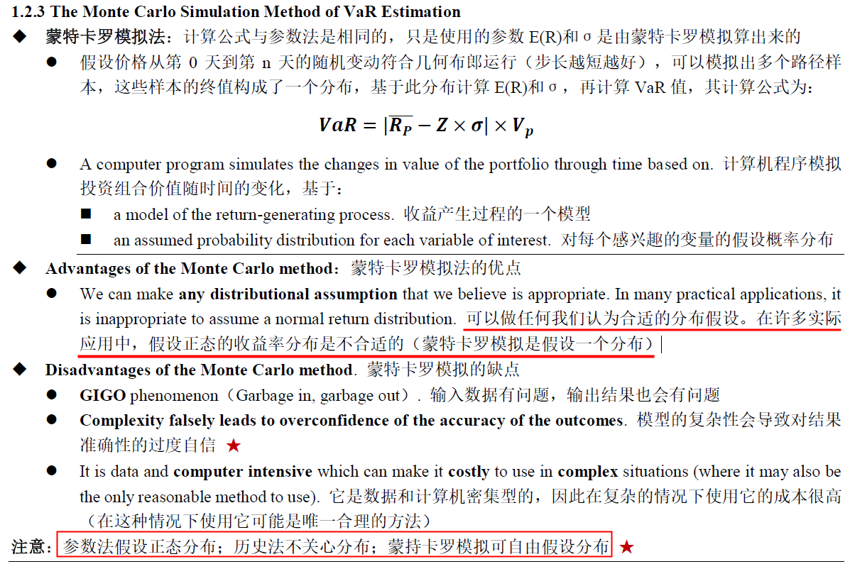这里说了backtest有两种模拟,历史模拟和蒙特卡洛模拟,没有说参数模拟,到底有没有参数法在这里?在var里面蒙特卡洛模拟是没有分布要求的…能回答清楚吗