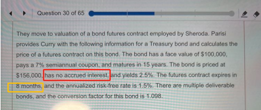 题目说没有应计利息,说明此时刚刚发完coupon,而此时签订一份为期8个月的期货合约,那么标的资产6个月之后会再次发coupon,那么期货合约会再多出来2个月(对应2个月的应计利息)