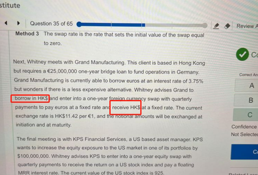 题目(如下截图红色)里面说的borrow HKD可以理解为currency swap期初t=0的本金互换的一部分,借入HK$本金收到HK$本金的现金流。