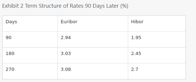 Grand will pay an interest rate of 1.8550% on the borrowed HK dollars and earn 2.3181% on the lent/invested euros.