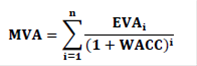 未来所有EVA折现后加总后等于MVA(参考下面的公式)。未来所有EVA折现后加总后等于MVA成立是有个假设前提的,即未来市值的增加完全来自于EVA的增加,因此这相当于是MVA的intrinsic value。