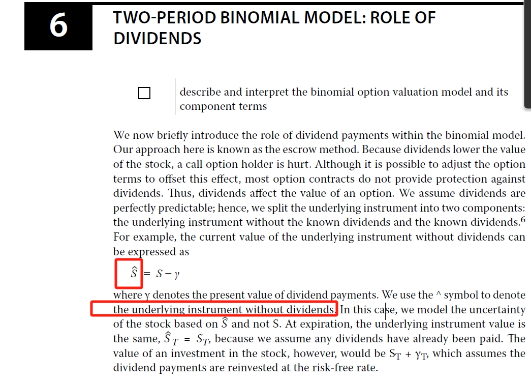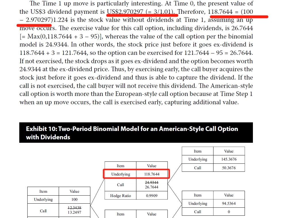用二叉树对(支付股利的标的资产股票)的美式期权定价的思路 是这个样子的(是比较”简单粗暴“) 原版书就是这样假设和处理的 请参考下图以及标红内容