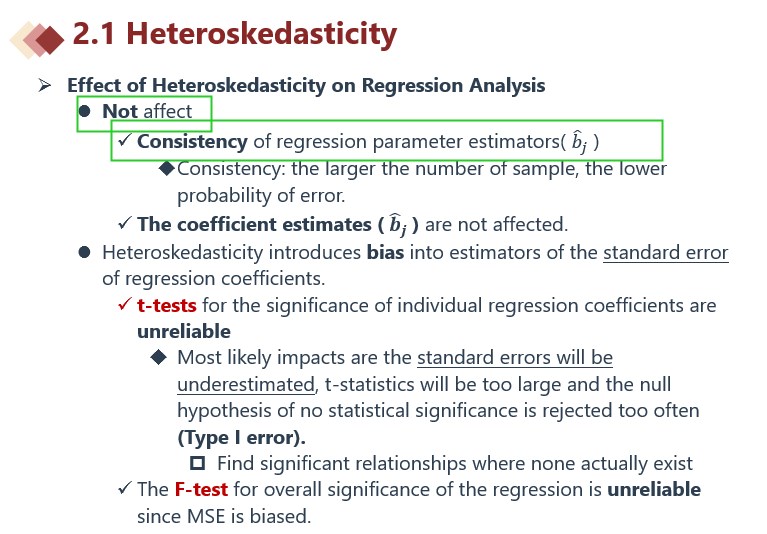 同学你好。没有这样的结论。模型出现异方差,不会对回归系数的一致性(consistent)造成影响。