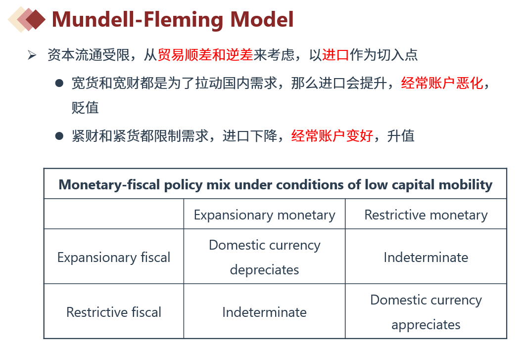在mundell fleming model 中为什么货币政策在四种分析模式中,只分析financial account对本币的影响,不分析对current account对本币的影响?