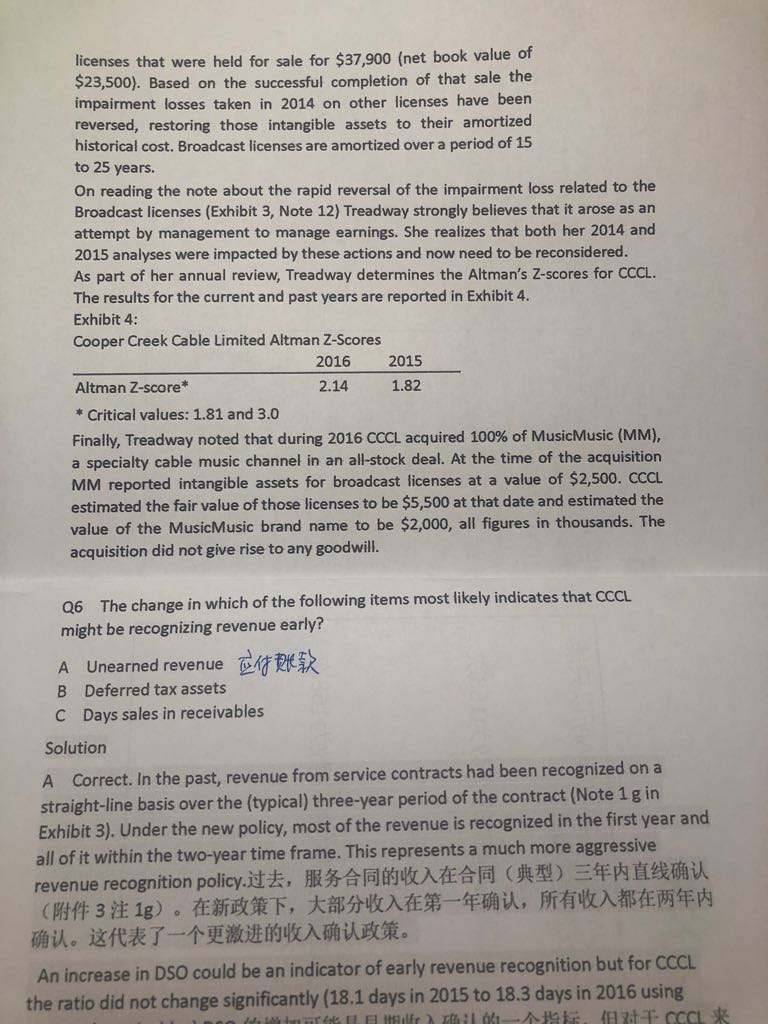 那么DSO=365/应收账款周转率,因为应收账款周转率减少,DSO增加。所以如果提前确认收入,DSO应该大幅增加。