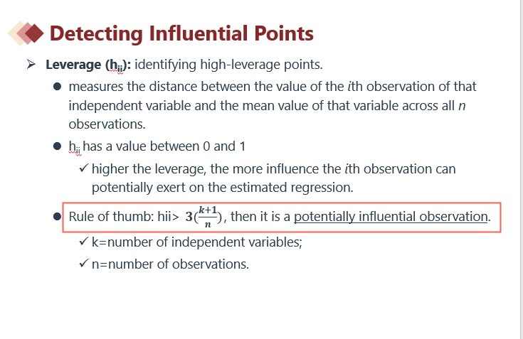 同学你好。在影响性分析中leverage(hii)中有讲过该经验法则。如下图