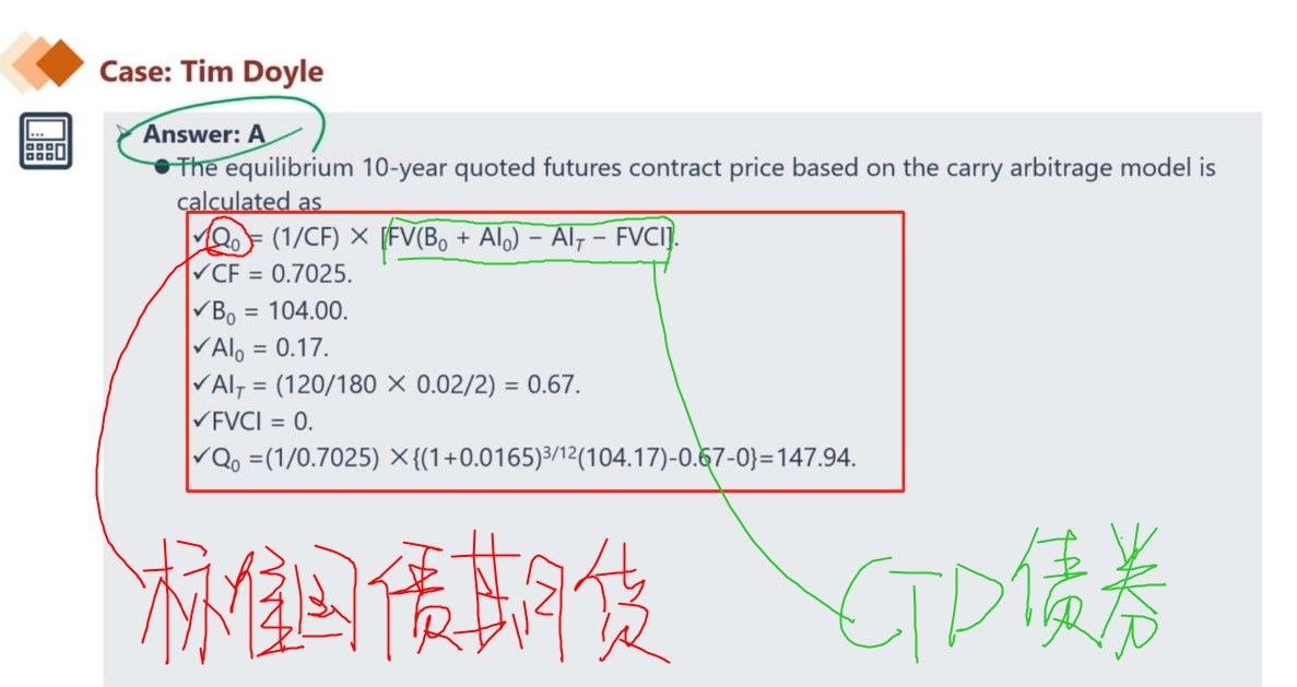 如果题目已知的信息是资产债券CTD的价格,那么CTD的价格需要除以CF得到标准国债期货的价格Q