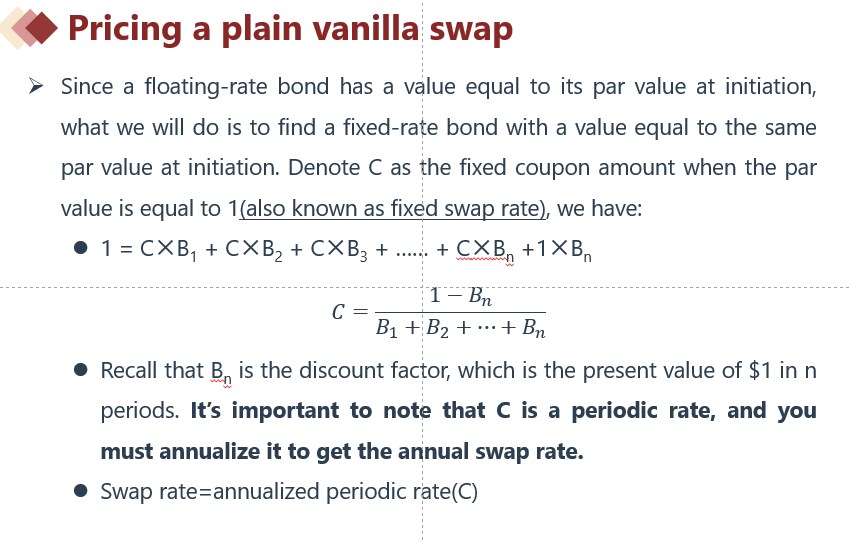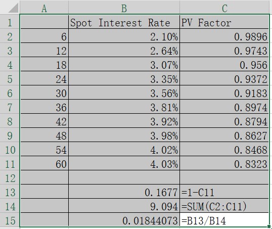 衍生Q8,老师请忽略题目编号,讲讲这个5年的固定利率的定价问题,为啥答案分子是1-B10,分母只加到B9,为什么不加B10呢?谢谢