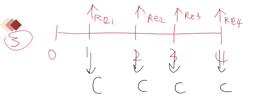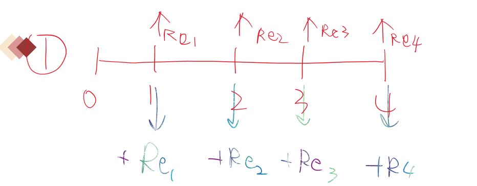 equity-for-equity的互换合约①,可以拆分为②和③,它们都是fixed rate for equity swap,fixed rate是方向相反,数值相同,于是②和③结合的综合效果是相互抵消,剩余Equity rate