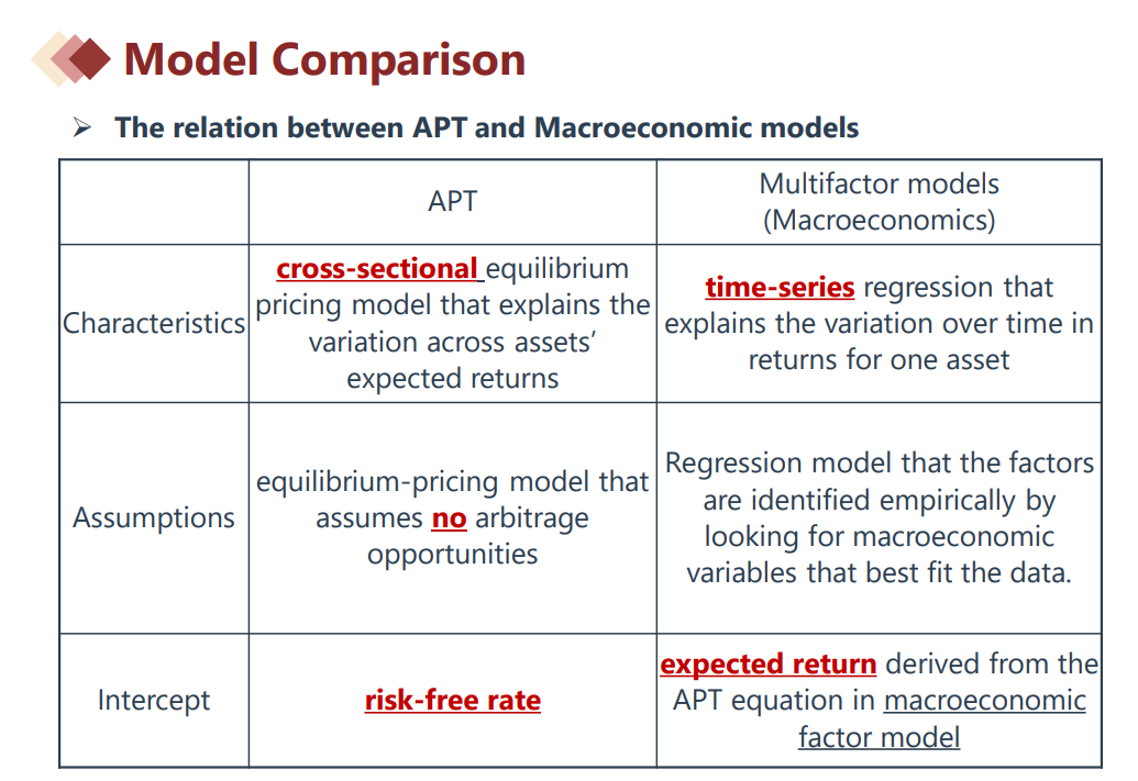 而你指的含有阿尔法的应该是Macroeconomics Factor Model, 这个不是属于定价模型。而在Multifactor models中的阿尔法就是来自于APT模型算出来的期望收益率。