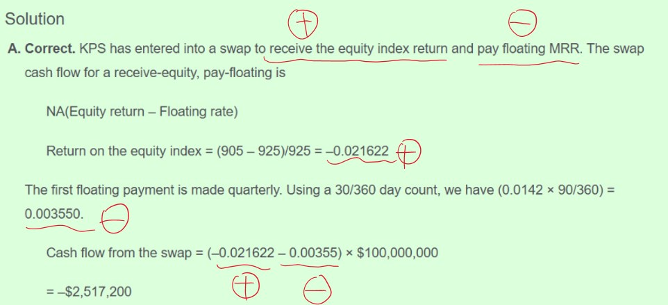题目问Equity Swap在90天之后的现金流(收到的现金流-支出的现金流)