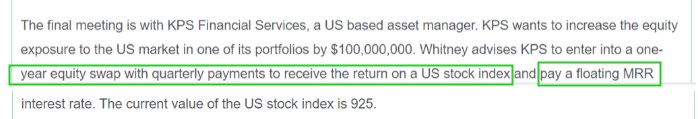 题目问的是90天之后这个时间点的现金流(净额)发生的数值是多少,也就是期初签订了Equity return 换 floating MRR的互换合约,在90天之后双方互换的现金流净额是多少,于是要用90天之后的股票收益对应的现金流和浮动利率对应的现金流,轧差