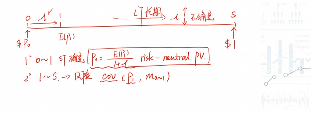 老师说的考虑风险后在risk neutral上加一个cov(p1,m0-1),但视频截图上面这个复杂的COVt(Pt+1,s-1,mt,1)怎么理解?