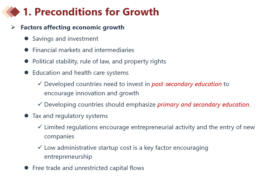 同学你好,这是两个不同的知识点。思维导图这个点对应的是讲义下图,是在社会制度或基础设备方面对经济增长的影响,这也是发达国家和发展中国家拉开差距的主要因素。而你说的五点也是影响经济增长的因素,只不过是资源要素方面
