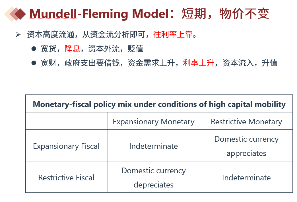 同学你好,资本不可自由流通时看CA时最方便的,经常账户盈余导致本币升值,赤字就导致本币贬值,具体可以参照下图总结