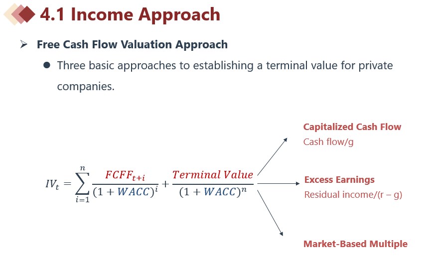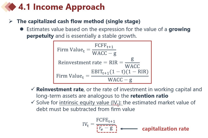 同学你好。CCM全称是Capitalized cash flow method;EEM全称是Excess earnings method或者Residual income method。计算公式如下图所示。