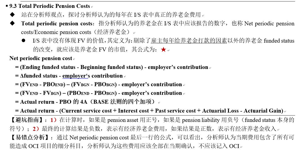 4. Total Periodic Pension Costs也被称为Net periodic pension costs/Economic pension costs(原版书删除了关于Total Periodic Pension Costs的知识,了解即可)