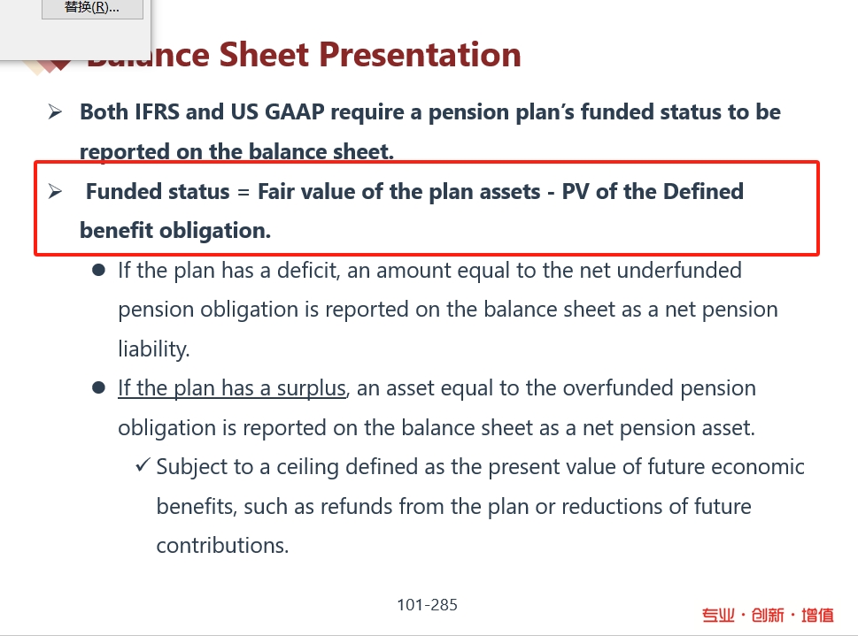 funded status 我听课的时候记录的公式是这样的,但视频中老师说是资产减负债,难道我记录的公式有问题?