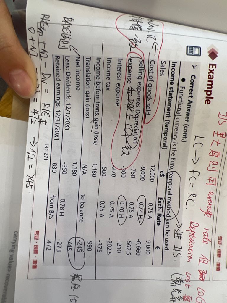 但是书里的例题temporal method下COGS汇率用的是0.74(weighted average rate when inventory was acquired),而不是historical rate0.7