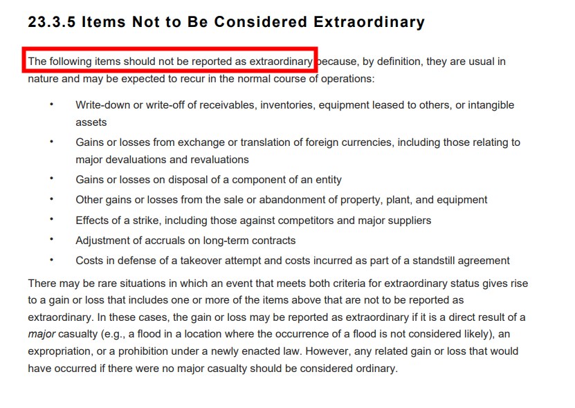 同学,上午好。不是一回事,这里extraordinary item更加复杂。而且extraordinary item在利润表中是税后列支的。