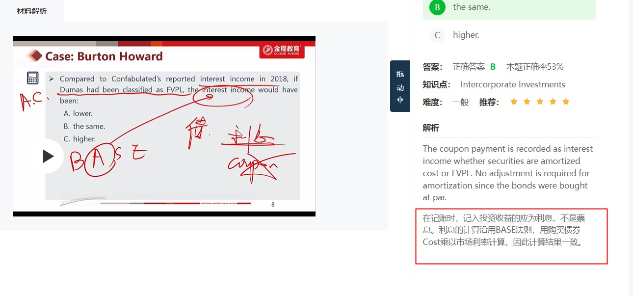 但是根据这一题的解答,int income代表的是coupon,溢价债券是int<coupon,所以int income是更高的,与题目要求更低不符。所以int income代表是int还是coupon?
