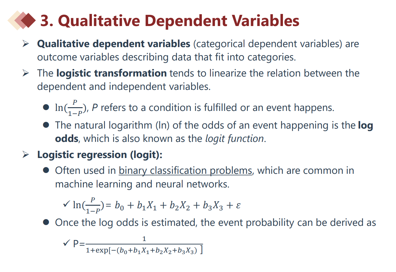 ln(odds)= 𝑏0 + 𝑏1𝑋1 + 𝑏2𝑋2 + 𝑏3𝑋3 + e