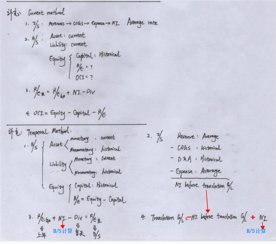 同学,上午好。temporal method下有两个NI,一个是资产负债表口径,一个是利润表口径,二者差值是translation gain/loss