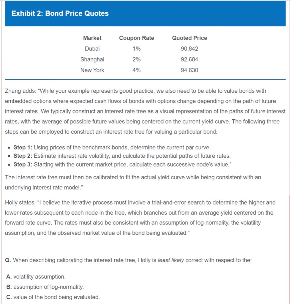固收,MB1-Q32 When describing calibrating the interest rate tree, Holly is least likely correct with respect to the: