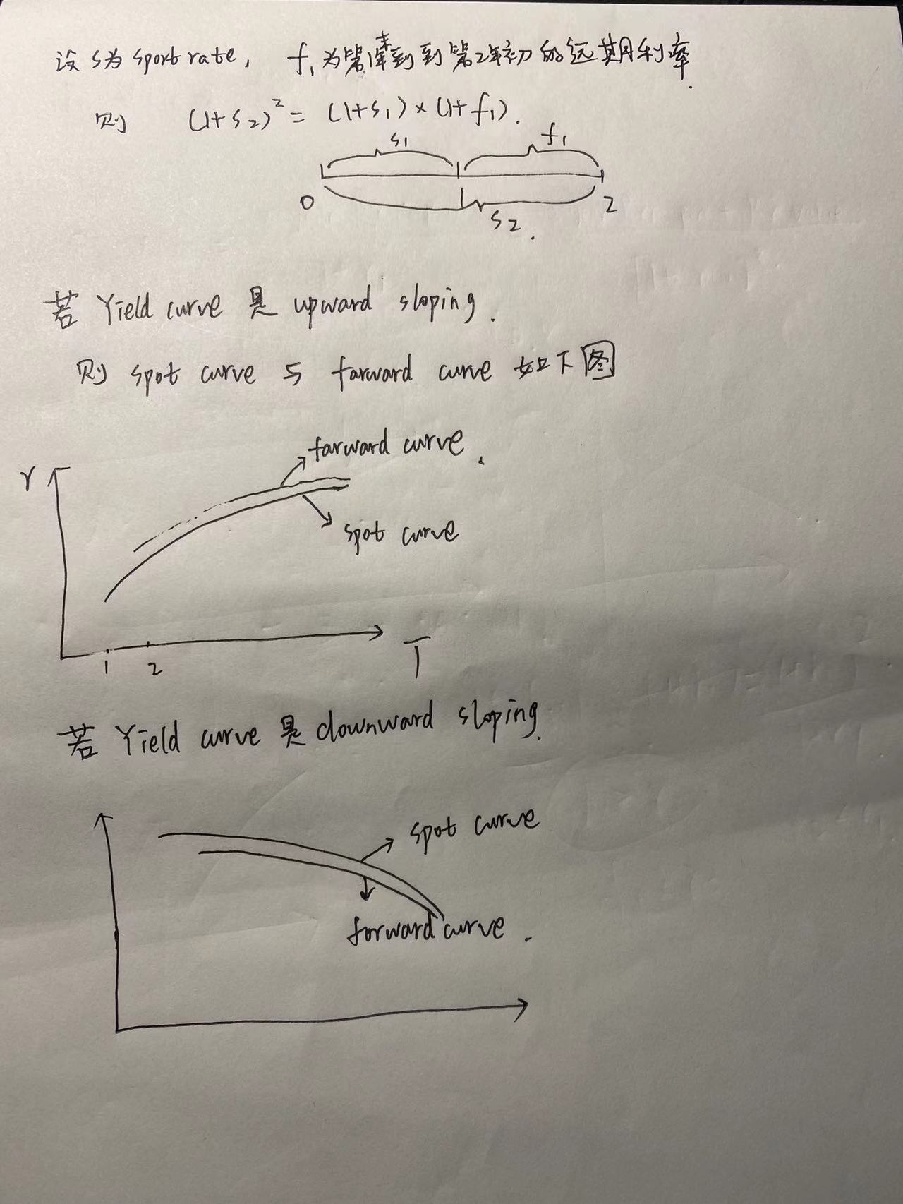 同学,你好。这一题考察的是spot rate 与 forward rate之间的关系。forward rate是由不同期限的spot rate 计算出来。具体公式和解答如下图。