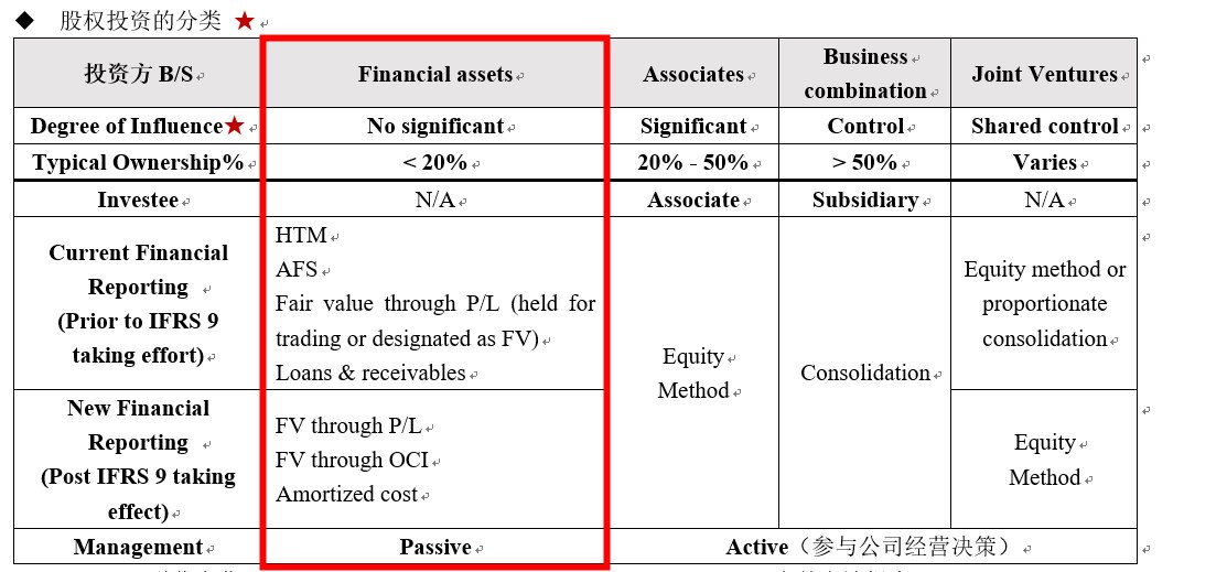 同学,上午好。passive是持股比例低于20%的投资方式。