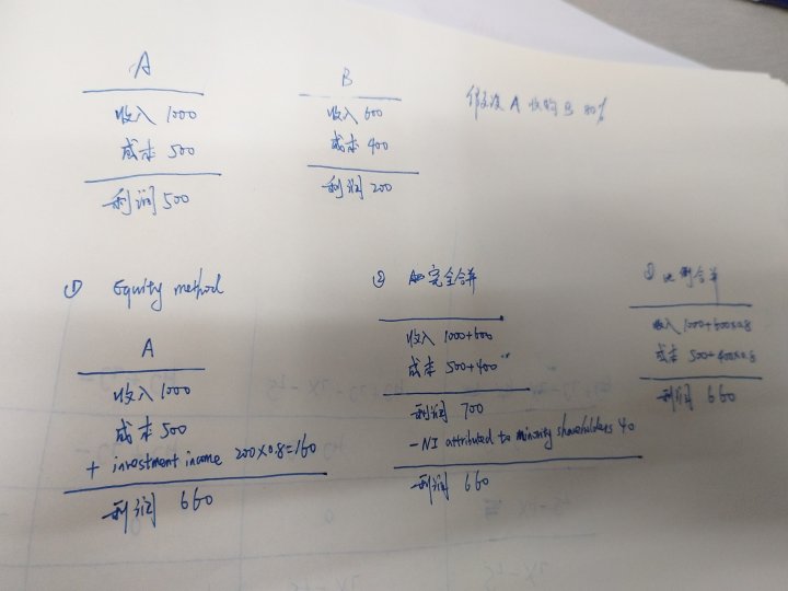 同学,上午好。不矛盾,第2问计算的是净利润,第4问计算的是revenue。不管是什么合并方法,不影响净利润,举例见截图。