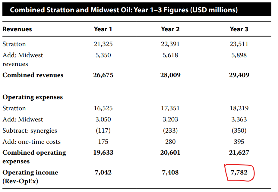 题目里面写的是每年完成synergies 就是USD350 million ,就是刚开始的时候没有一次到达到350,第一年是117,第二年233,第三年开始预期就是每年350.