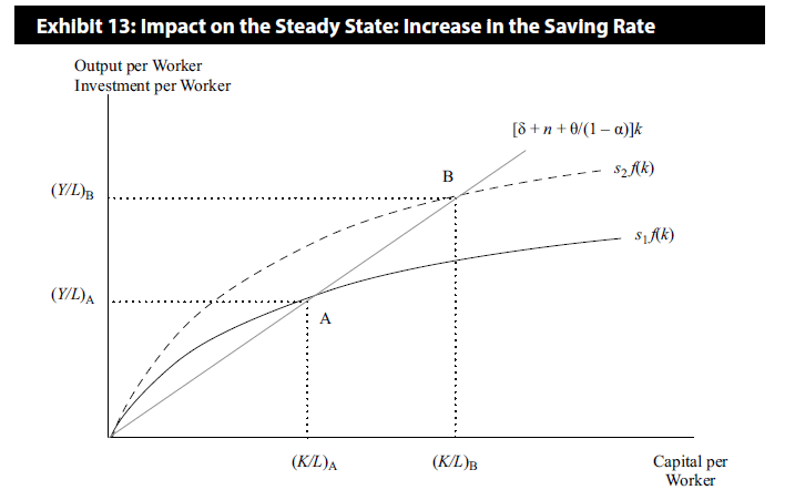 同学你好,稳态的定义就是Y/K为常数,在稳态下,Δy/y=Δk/k=θ/(1-a),而ΔY/Y=θ/(1-a)+%△L。由于稳态的定义就是Y/K,所以在不同技术水平下,虽然生产函数曲线会有高低,但是各自的稳态都是Y/K为常数,那这就能确保稳态点的连线是直线,毕竟斜率=Y/K是相同的