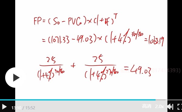 远期合约的定价forward price是标的资产在未来的交易价格,于是需要基于债券的coupon发生的时间点计算PVC0