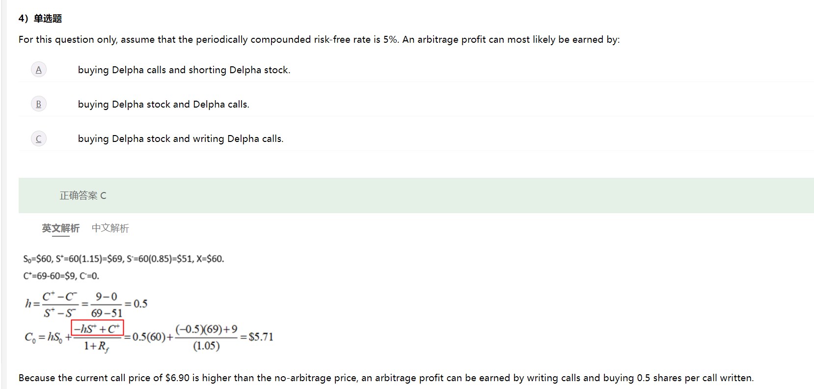 当股票涨价,期权就赔钱,反过来一样,当股票赔钱,期权涨价赚钱,最终投资组合的价值在股票上涨和下跌的两种情况下是相等的,也就是不收股票价格波动的影响,于是是无风险投资组合