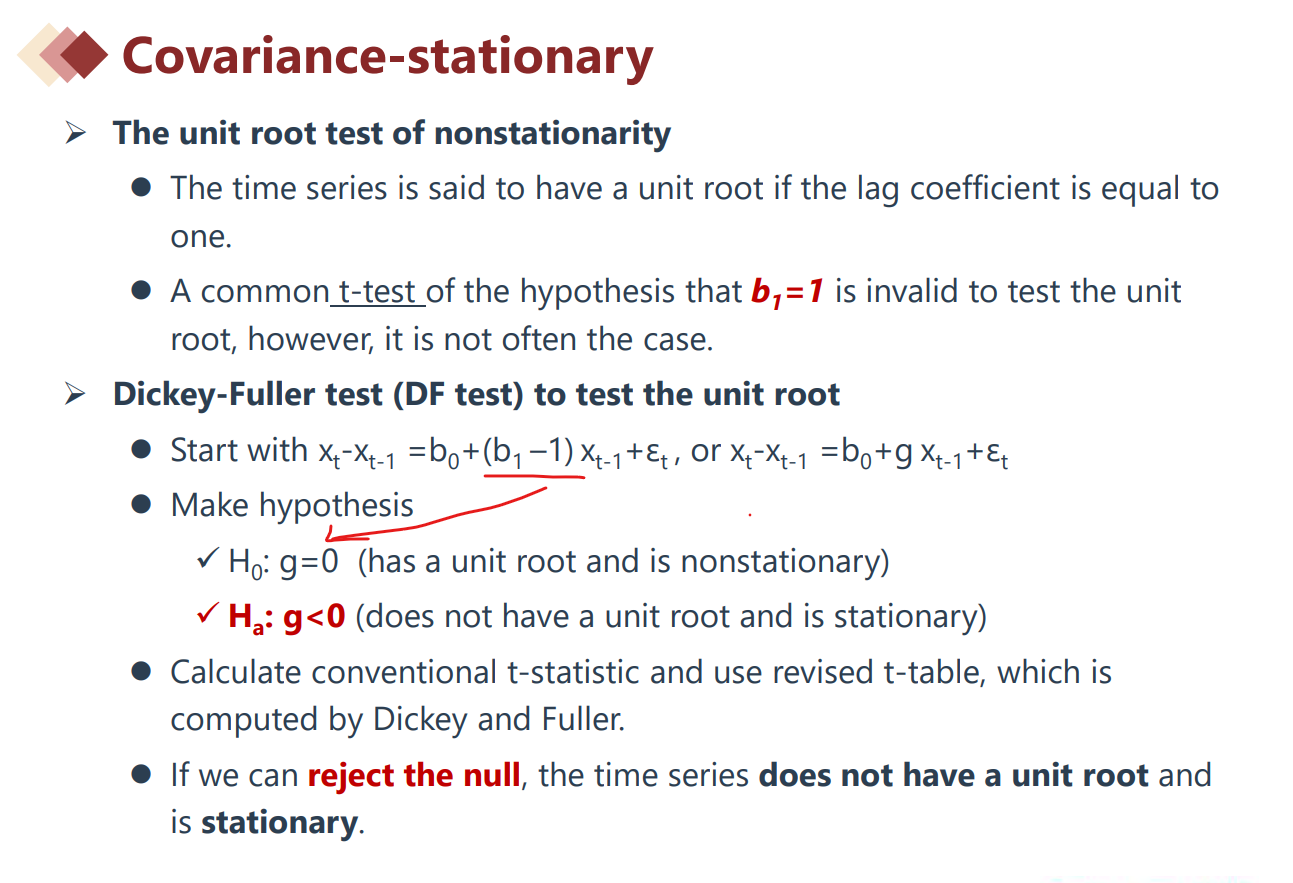 在变成Regression 2之后,Regression 2中的b1=1,就变成了0. 原理就是DF检验,这个Regression 2的b1就等同于DF检验里面的g。