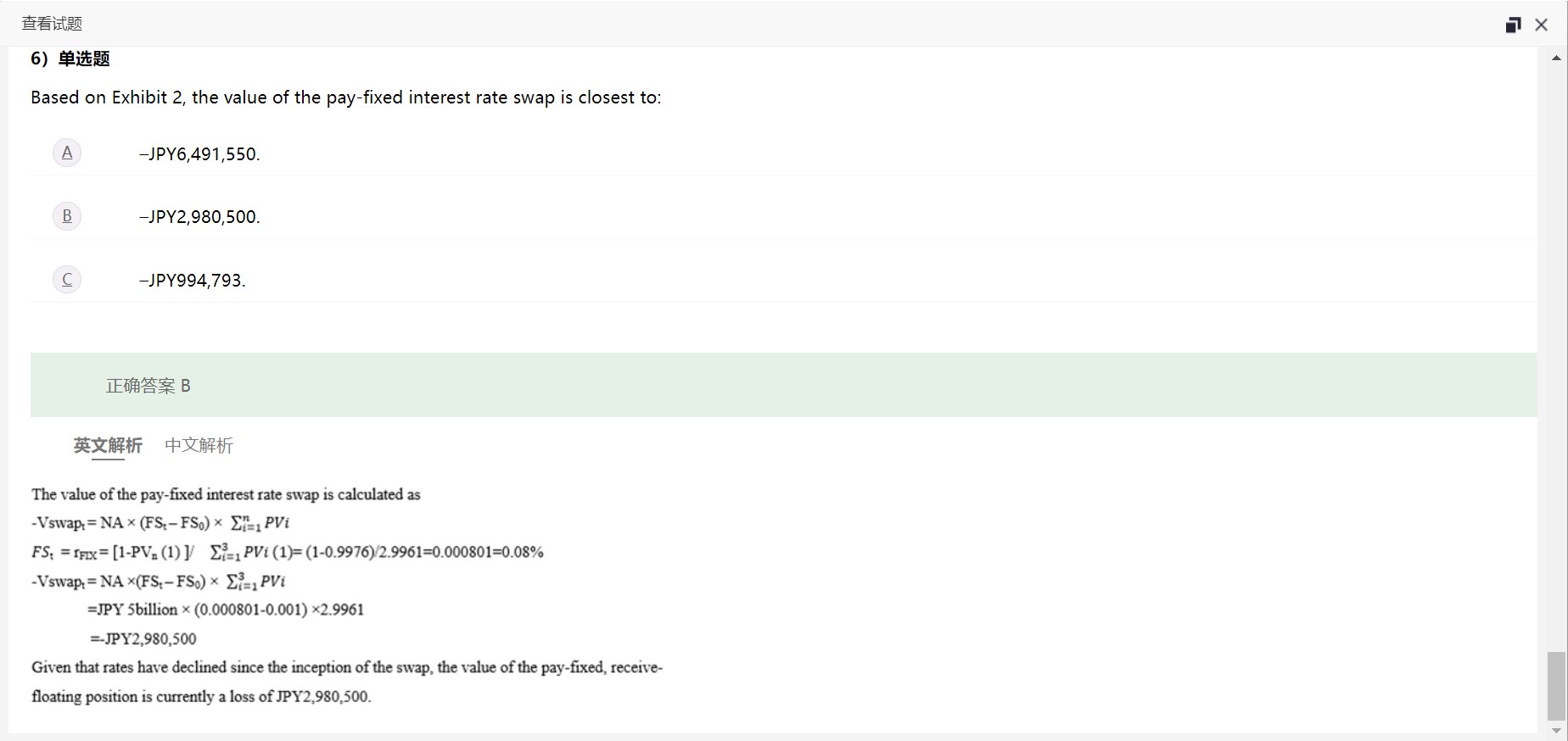 请参考以下截图,我们研究的是互换,不是期权(这个应该是你打错了吧)