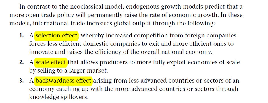 Scale effect是开放经济能够把产品出口到全球市场,加大产量,达到规模效应,降低单位成本。