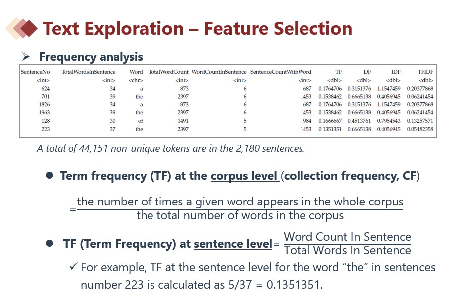 TF有两个层面,一个是句子层面(sentence),为TF=Word Count In Sentence/ Total Words In Sentence.