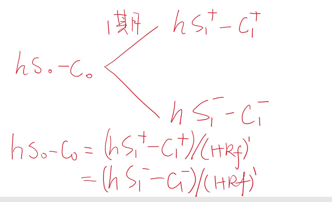那么投资组合就是+△S-c=+hS-c,这个和你蓝色截图的公式一致
