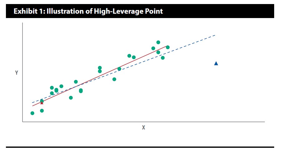 同学你好。高杠杆点(high-leverage point)是指具有自变量极值的数据点;异常值(outlier)是指具有因变量极值的数据点。