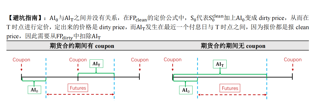 同学你好,我们先回顾一下基本公式:𝐅𝐏𝐜𝐥𝐞𝐚𝐧 = (𝑺𝟎) × (𝟏 + 𝐑𝐟)^𝐓 − 𝐅𝐕𝐂 − 𝑨𝑰𝑻, 这里的S0 是全价的概念,A0 虽然不在期货合约范围之内,但站在0时点,假如我要买一个债券,除了此时的clean price,AI0也是要支付的,因为别人持有这个债券已经一段时间了, 因此,往后算FP时,要在净价的基础上,加上支付的AI0,.按照此时的全价计算~