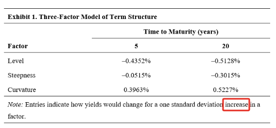 这道题的第三问,怎么判断level,steepness,curvature 标准差变动是导致利率上升还是下降呢