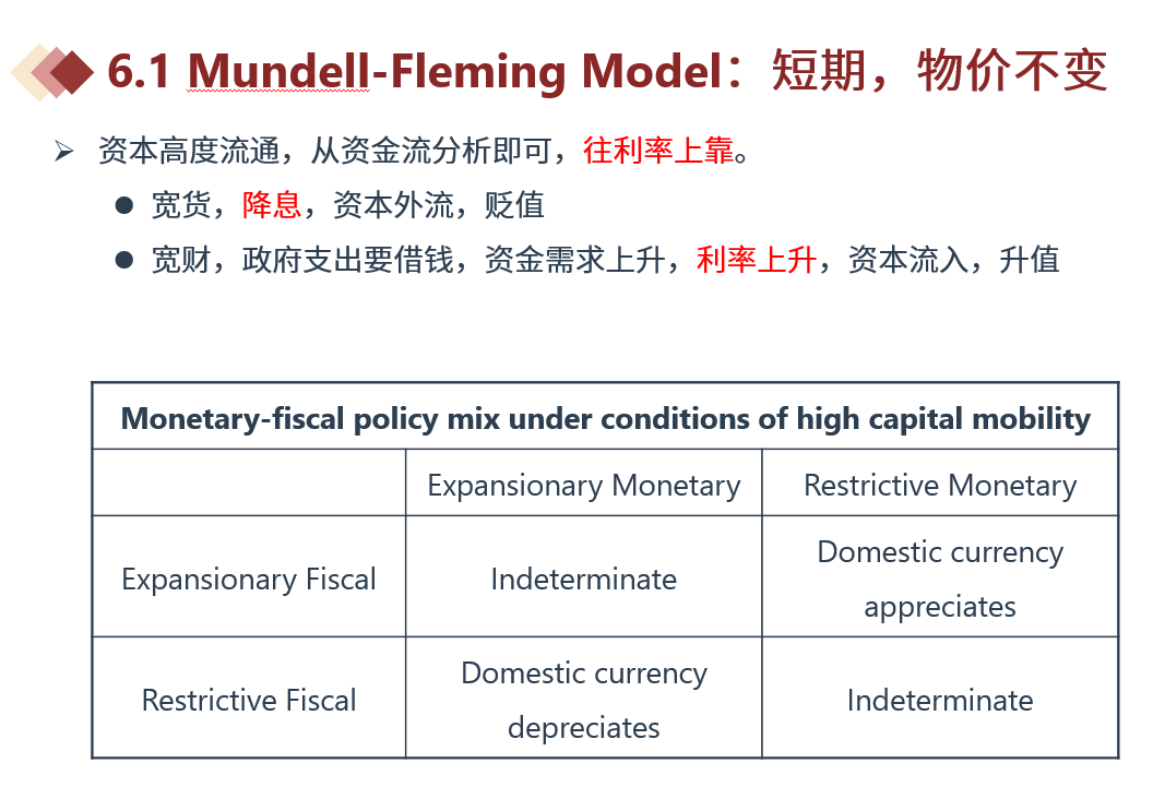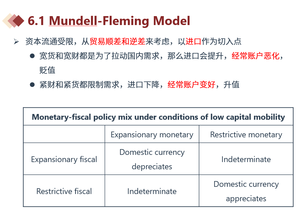 同学你好,FA是衡量资本流动的,既然资本都不能自由流通,那么看FA也没啥意义了,那就通过CA来分析汇率变动,而CA就是看经常账户的盈余和赤字来衡量汇率变动。财政政策和货币政策对于汇率的影响因素已经全部汇总如下了。