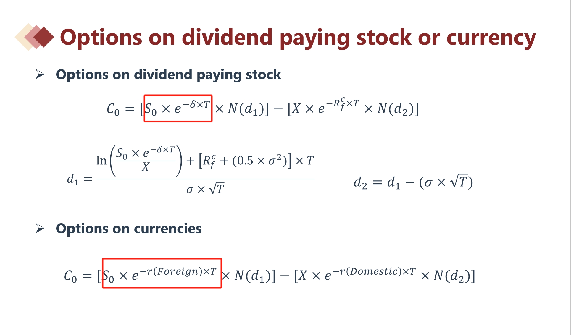同学你好,你这里考虑的discount CF其实就是有产生现金流的情况。 比如股票发放股利,有现金流出,肯定会影响股价,会导致股价下跌。如图,在有股利和外币结算的现金流变动的情况下,股价会有影响,期权价值也会受到影响。