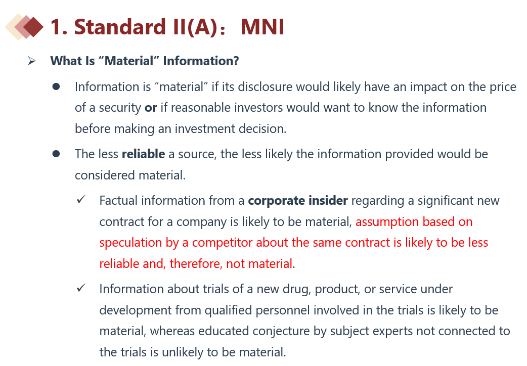 同学你好,这个要取决于是什么信息,如果是对手方所做出的揣测或假设,那么就不是MNI。如果是对手方所透露的公司内幕消息,那就是MNI