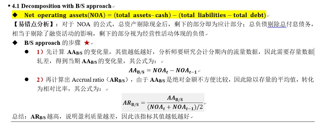 Q4,如果是资产负债表法计算accrual ratio,公式应该怎么写,应该怎么去理解?