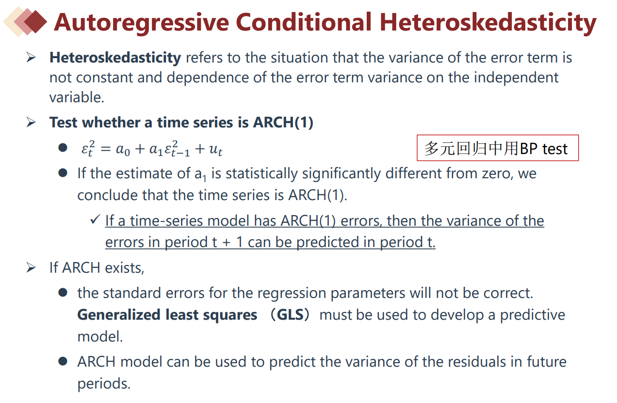 ARCH模型假设当前时期的误差项方差可以由前一时期误差项的平方来解释。