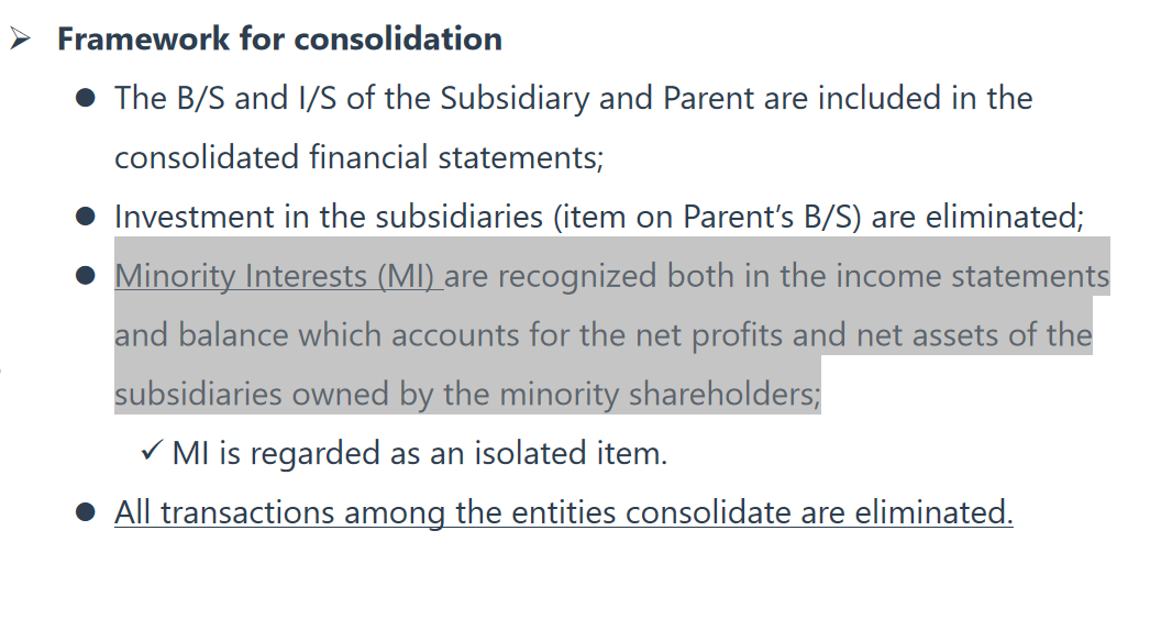 如下图所示非控股股东那部分合并进来的利润在minority interest那里钆差掉了,